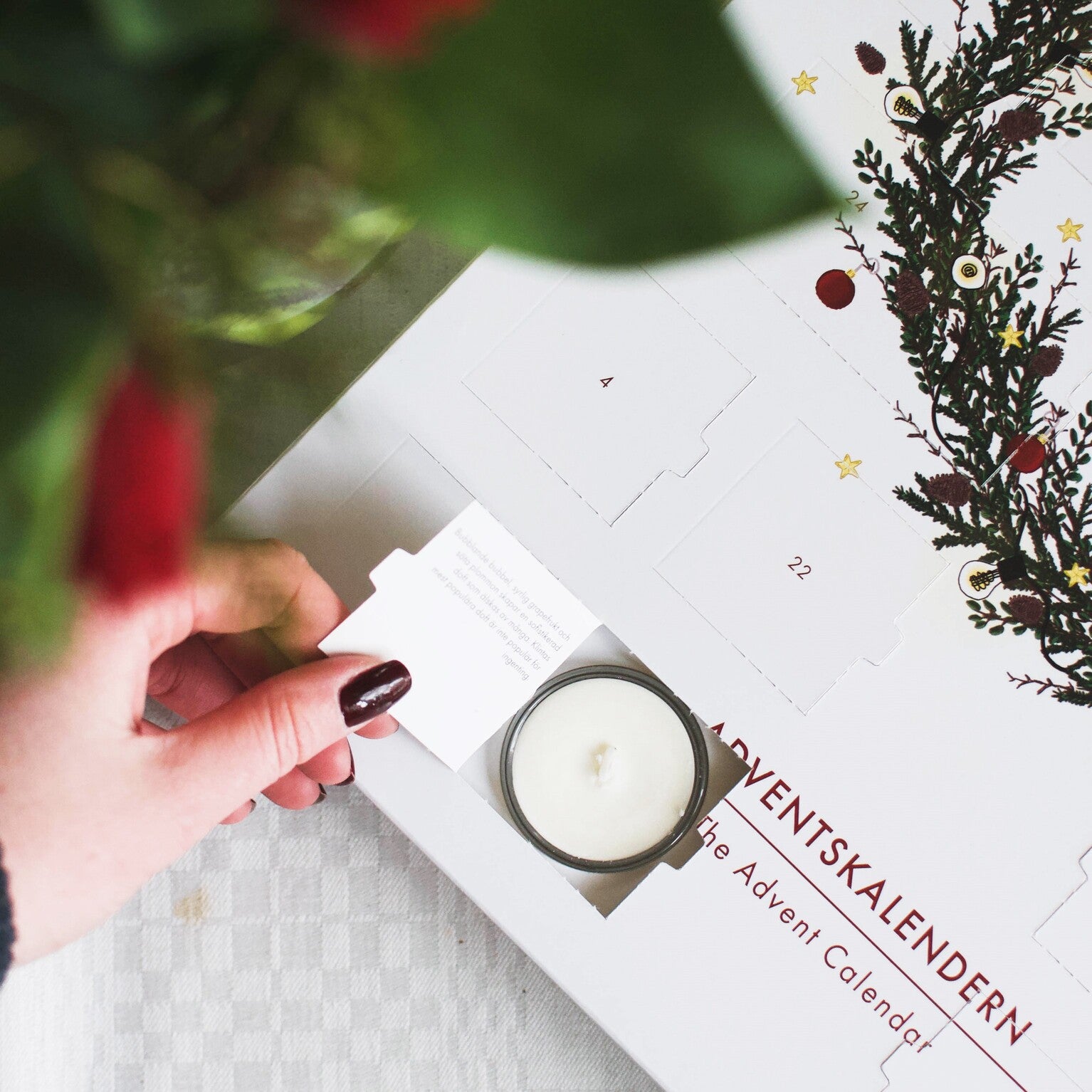 I denna adventskalender får du en ny doftupplevelse varje dag och på julafton får du inte mindre än två dofter. Vilka dofter? Det är givetvis en överraskning. Men det finns många nya favoriter att hitta!